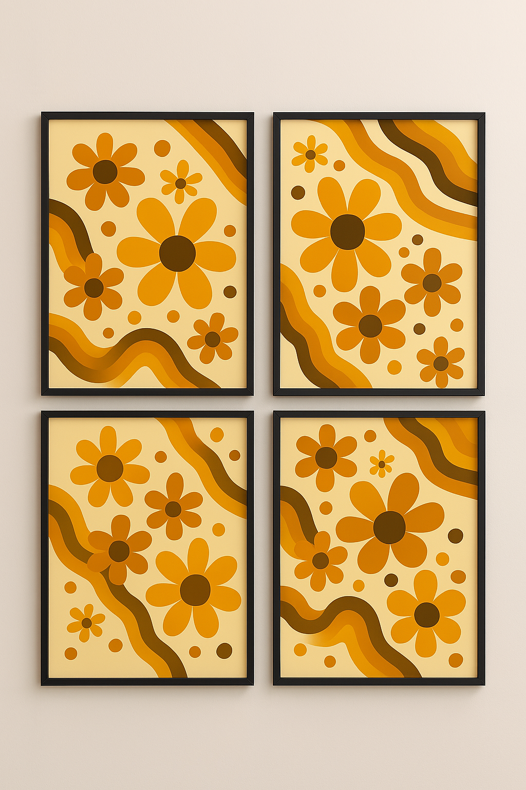 Bilder - 70 - talls retro. sett på 4 stk. PDF utskriftsbar.